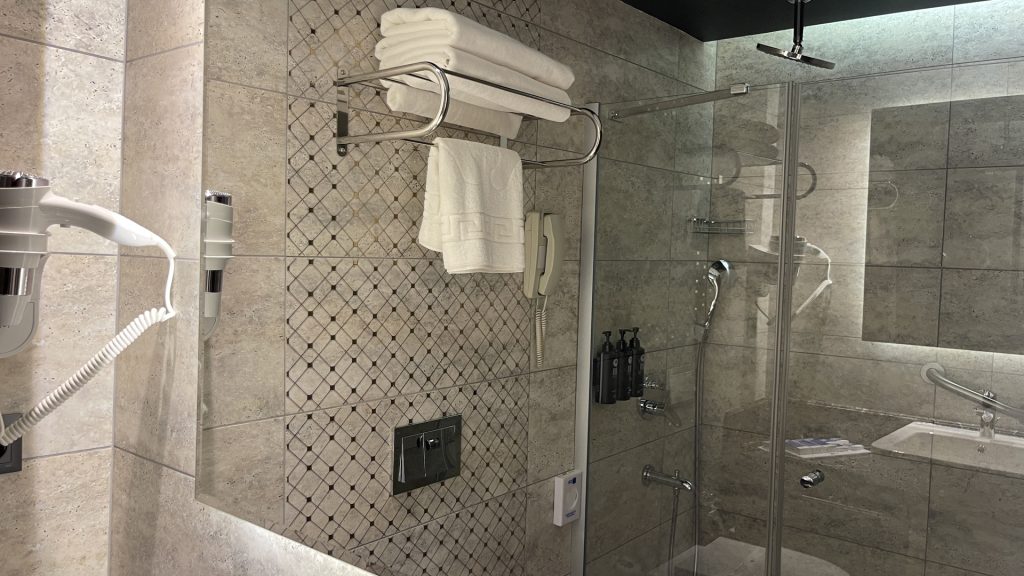 2 tek kişilik 90*200 ebatında yatak, 1 iki katlı 90*200 ebatında ranza ile max. 4 kişi konaklayabileceğiniz özenle döşenmiş, şehir manzaralı odamız, 40 m², sigara içilmeyen, mini bar, çay/kahve makinesi, IP HDTV, ütü & ütü masası, otomatik kontrollü klima, dijital kasa, saç kurutma makinesi, ücretsiz yüksek hızlı Wi-Fi, geniş çalışma masası ve rahat koltuk, USB çıkışları, elektrik adaptörleri imkanlarımız.