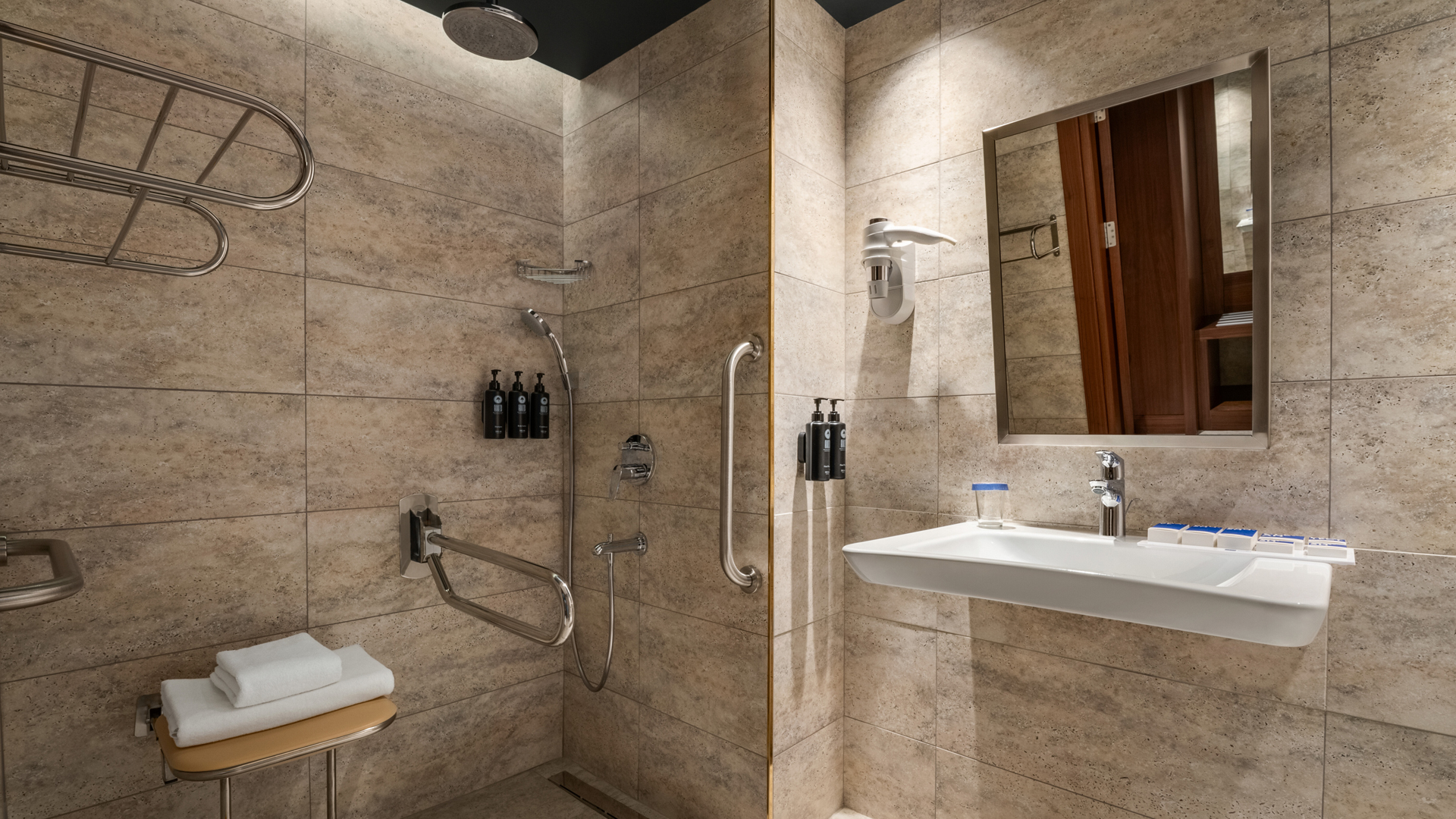 1 çift kişilik 160*200 ebatında yatak, engelli bireylerimiz için, isteklerine karşılık verecek şekilde özenle döşenmiş banyo ve acil durum butonlu duş, şehir manzaralı odamız, 35 m², sigara içilmeyen, mini bar, çay/kahve makinesi, IP HDTV, ütü & ütü masası, otomatik kontrollü klima, dijital kasa, saç kurutma makinesi, ücretsiz yüksek hızlı Wi-Fi, geniş çalışma masası ve rahat koltuk, USB çıkışları, elektrik adaptörleri imkanlarımız.
